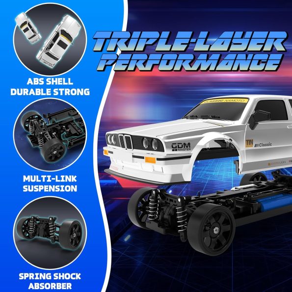 - ESP Gyro & Multi-Link Suspension: Master every dynamic drift with precision! The ESP gyro, multi-link suspension, and advanced spring shock absorbers work together to automatically correct skids and ensure stability on any terrain. Perfect for high-speed racing and technical maneuvers, making it ideal for both beginners.