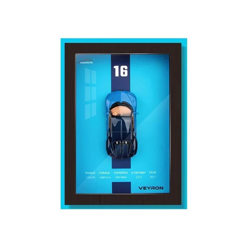 DD WORLD 1:32 Bugatti Veyron 3D Diecast Caar Model with Wooden Frame | Metal Sports Car Wall Art & Photo Display | Premium Collectible Gift for Caar Enthusiasts & Decor Lovers