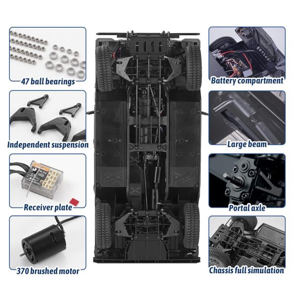 - 【On-Road & Off-Road Dual Mode】 The unique bionic spine design allows this RC crawler to switch freely between road and off-road modes. The powerful motor and four-wheel drive design provide power to the car, enabling it to overcome various difficult terrains, bringing you an excellent outdoor racing experience.