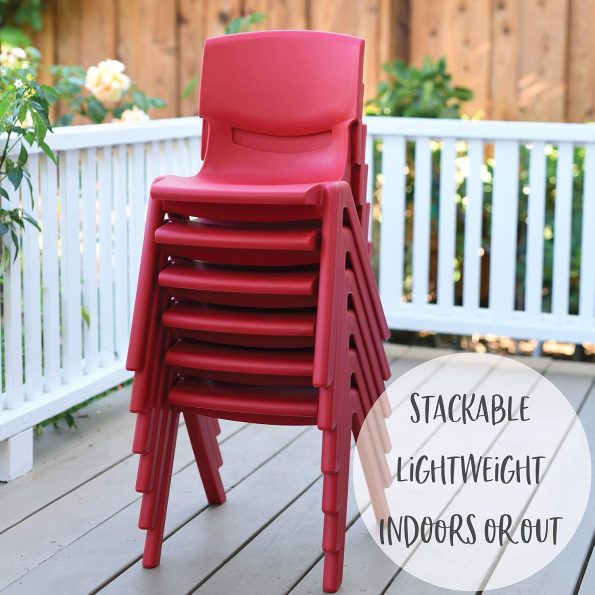 Intra Kids 12 inch School Classroom Stack kids Chair, Red, 4-Pack