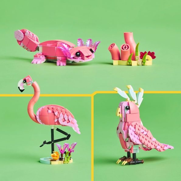 3 wild animal building options in 1 box ? The LEGO Creator 3in1 Wild Animals: Pink Flamingo toy set lets girls and boys aged 8 and up build and rebuild 3 different animal figures with the same bricks