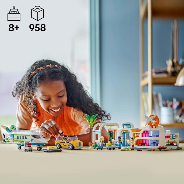 Building kit for friendship play ? This Heartlake City Airport and Airplane set for kids aged 8 and up includes 7 minidolls, a baby, a dog figure, a buildable airplane, a taxi and luggage