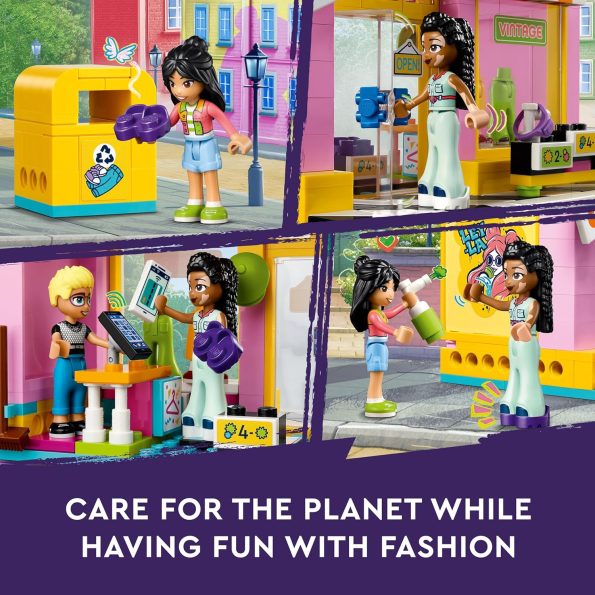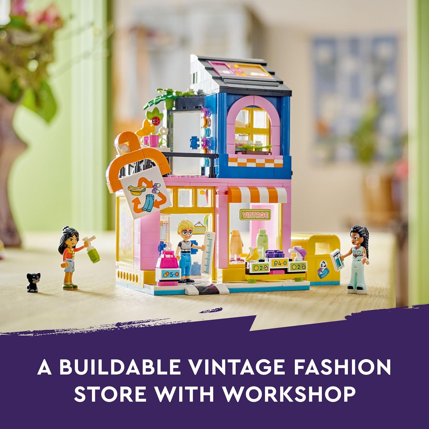 LEGO Friends Vintage Fashion Store set ? This social-emotional toy includes a buildable shop with workshop, 3 mini-dolls, a cat toy figure, plus lots of fashion accessories for kids aged 6 plus