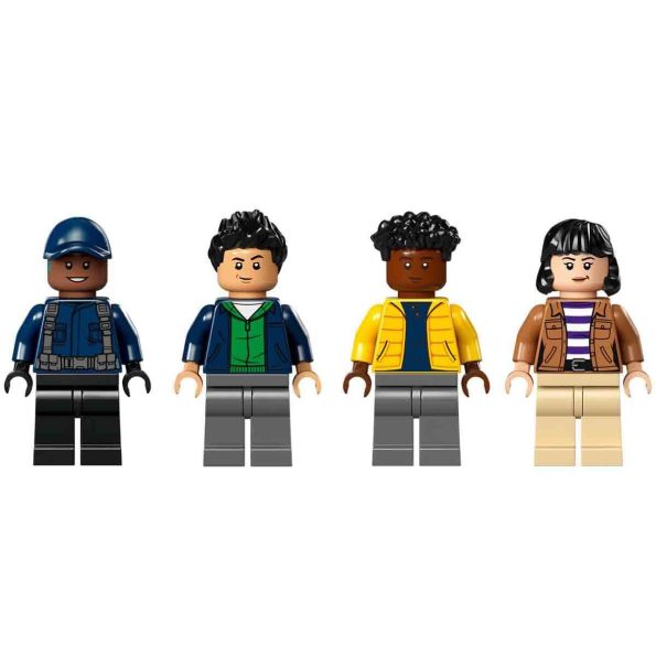 Movable Allosaurus figure ? Features a moulded dinosaur toy set with movable arms, legs, head and opening jaw, plus Darius, Kenji, Yaz and guard/driver minifigures to kick-start role play and stories