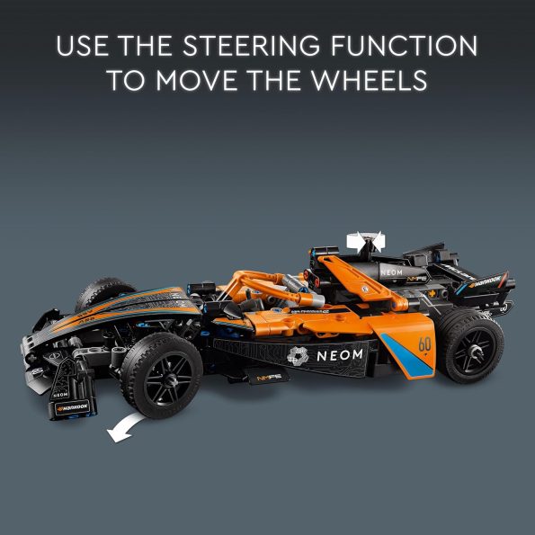 Steer the car ? Kids can use the steering function to move the wheels of this car toy as they enjoy hours of creative play with the LEGO Technic NEOM McLaren Formula E Race Car set