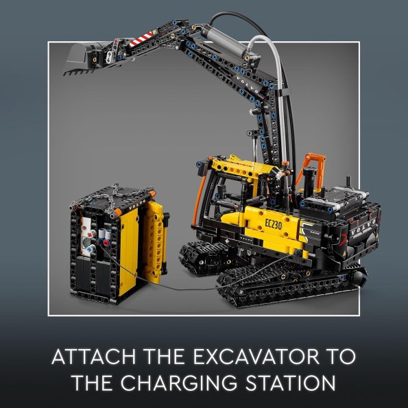 Toy electric charging station ? Kids who love vehicle playsets can have fun lifting and lowering the charging station using the scoop and chains, ready to attach it to the electric excavator toy