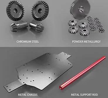 Robust Construction: Built for durability, the RC car features a 6061 aluminum alloy chassis, metal drive shafts, and chrome steel gears. This sturdy construction enhances the car’s ability to handle rough terrain and ensures longevity and reliability during high-speed runs.