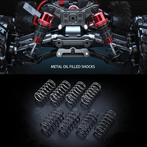 Advanced Suspension: The vehicle is equipped with a full metal hydraulic shock absorber system, including front short and rear long metal shocks. This setup provides a smoother ride over uneven surfaces, improving handling and stability.