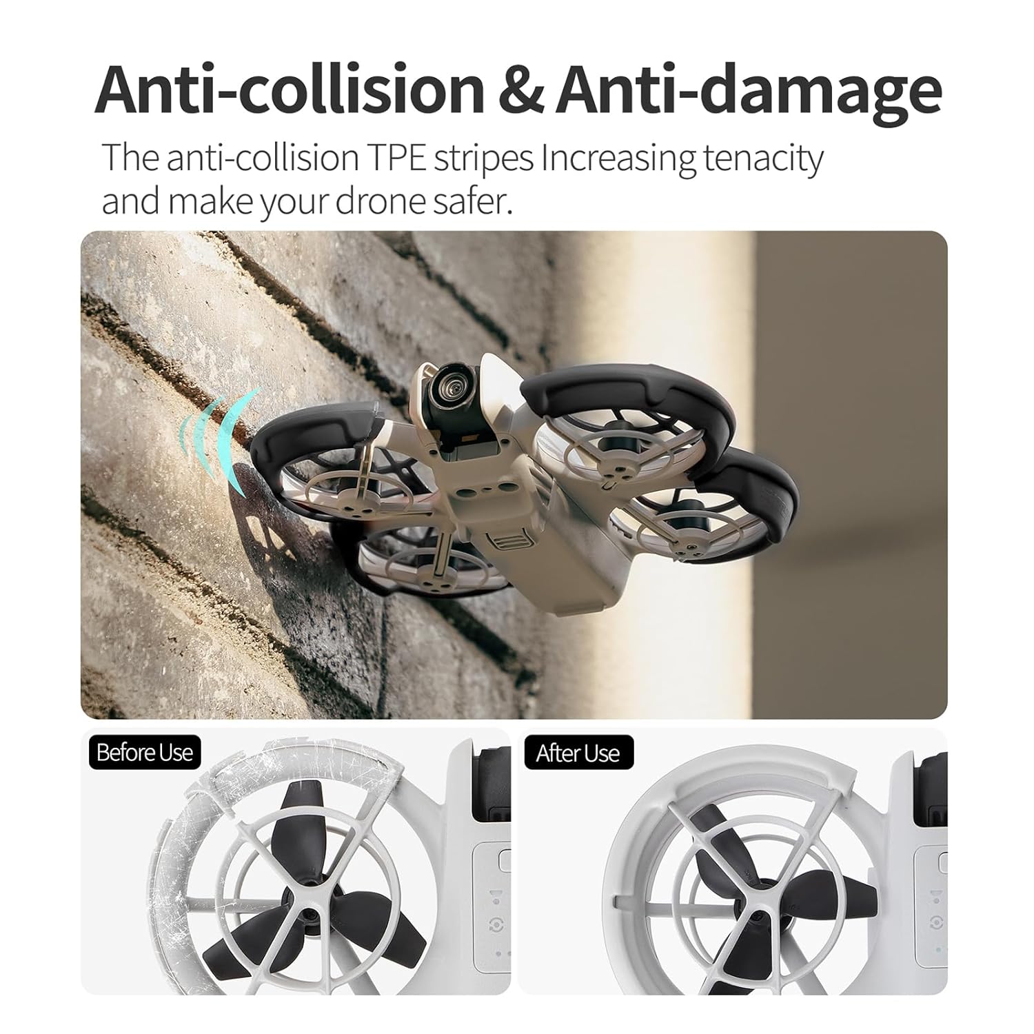 - Advanced Material Engineering: our bumper guards for dji neo are made from high-resilience material tpe that effectively absorbs impacts, which provide unparalleled protection, preventing damage from accidental collisions with trees, walls, or any other obstacles, making them essential accessories for beginners.