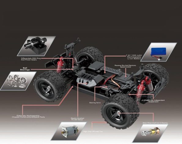 - 【PROPORTIONAL THROTTLE & STEERING CONTROL】Compliant with hobby RC car standards, TonyrA 4WD truck uses 16 ball bearings, metal driveshafts and premium gears in the drivetrain, with four suspension shocks to traverse a wide variety of terrain with ease.