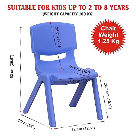 - 🪑 MADE IN INDIA – Proudly manufactured in India. Recommended children chairs 1-3 years ages 1 and up. Provide safe seating for developing tots that you care for in your nursery, daycare or preschool. Well suited for the classroom, these school chairs have no metal pieces making them safe around energetic preschoolers and kindergartners.